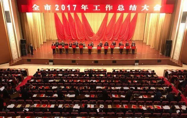 全市2017年工作总结大会在国际会展中心举行,市委副书记、市长张永霞出席并作重要讲话。大会对过去一年涌现出来的一批成绩突出的先进集体和先进个人给予表彰市领导为2017年度经济社会发展综合考核先进集体和先进个人代表颁奖,并兑现了制造业强市和创新驱动发展战略奖励政策。铜陵培林装饰工程有限公司被授予“经济发展功勋企业”,公司党委书记、董事长杨恒坤被授予“经济发展功勋个人”荣誉称号。