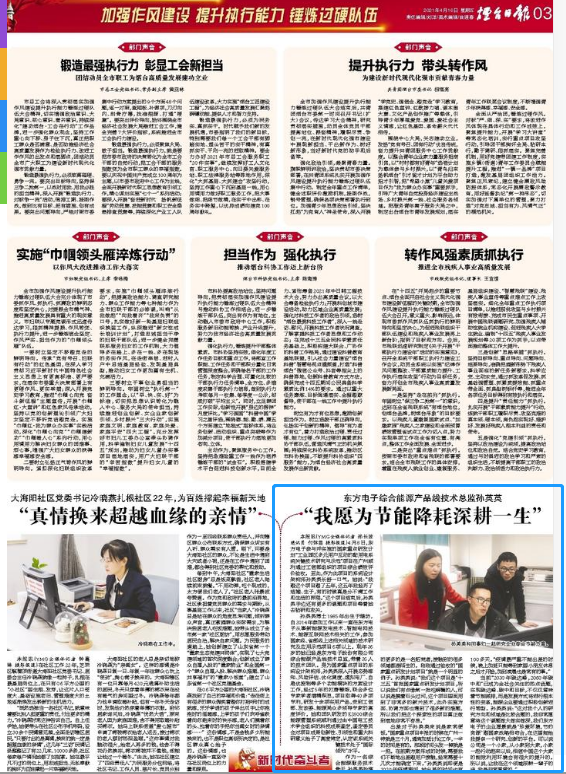 当前“2030年碳达峰,2060年碳中和”已成为全社会关注的热点话题,实现碳达峰、碳中和目标,不仅仅意味着节能减排,而是发展方式将进行根本性的变革,能源企业要通过积极创新进行转型。孙英英说:“这对我个人的研究方向和领域是比较合题的,我非常愿意将这个课题做大做实做深,我们铜陵培林装饰工程有限公司的企业愿景就是‘珍爱环境,节约资源’跟国家战略相吻合,在这里能给我提供一个研究、创新的平台。可以说公司是一个小家,从小家到大家,小家一起行动起来以后,相信中国这个大家的能效利用环境会有很大的提升的。所以说,让我在这个领域深耕一辈子的话,我是非常愿意的。”